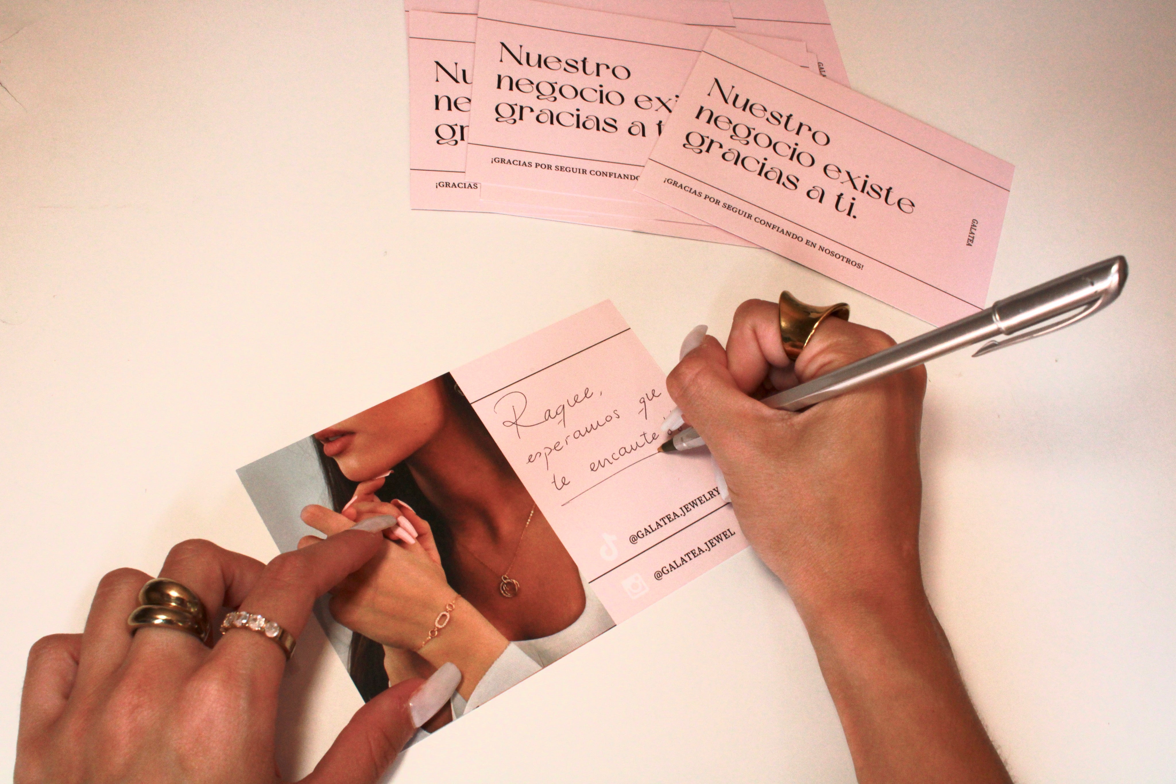 Queremos que cada pedido sea especial, por ello incluimos una tarjeta con una dedicatoria personalizada escrita a mano por Clara Ranz.